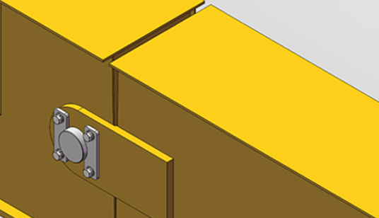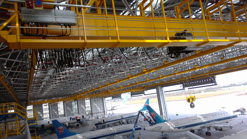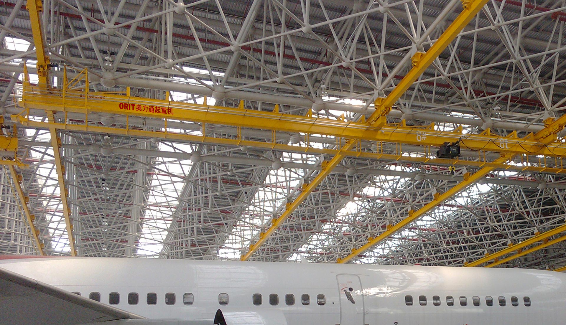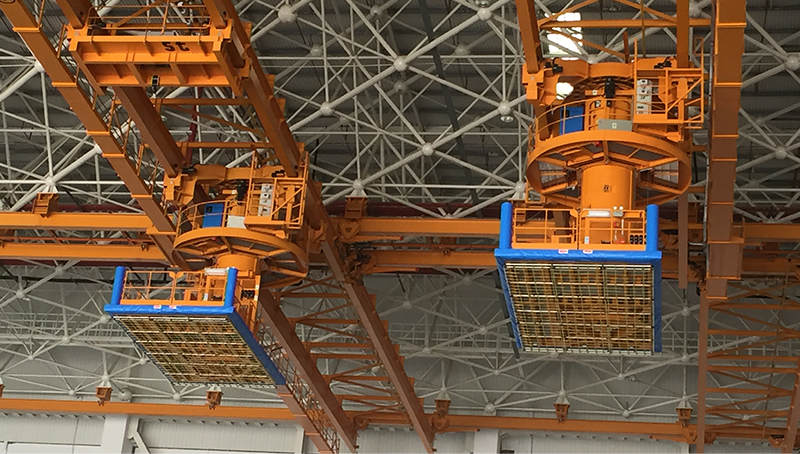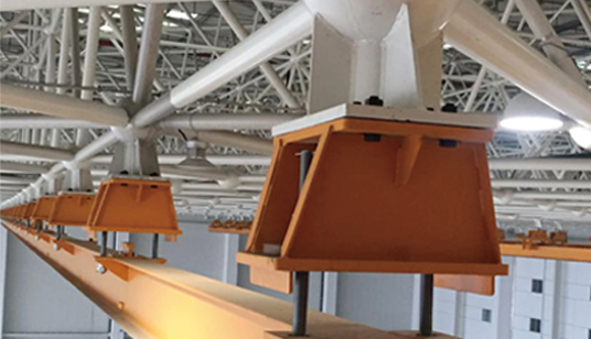 专利技术: YABO鸭脖发明专利技术(ZL 2009 10143701.X)吊点新设计为“柔性吊点”,是在原来的刚性吊点基础上增加吊杆和关节球轴承的可调部分,关节球承选用自润滑型,免维护设计,吊杆选用高强特制螺杆,连接强度高,便于轨道垂直方向调节;有效减小网架变形对起重机的影响。具有水平位移自动纠正功能;具有自适应性,避免啃轨;设计简单、制作方便、成本低廉。柔性主梁可有效减小侧向应力,避免啃轨,保证运行更加平稳。